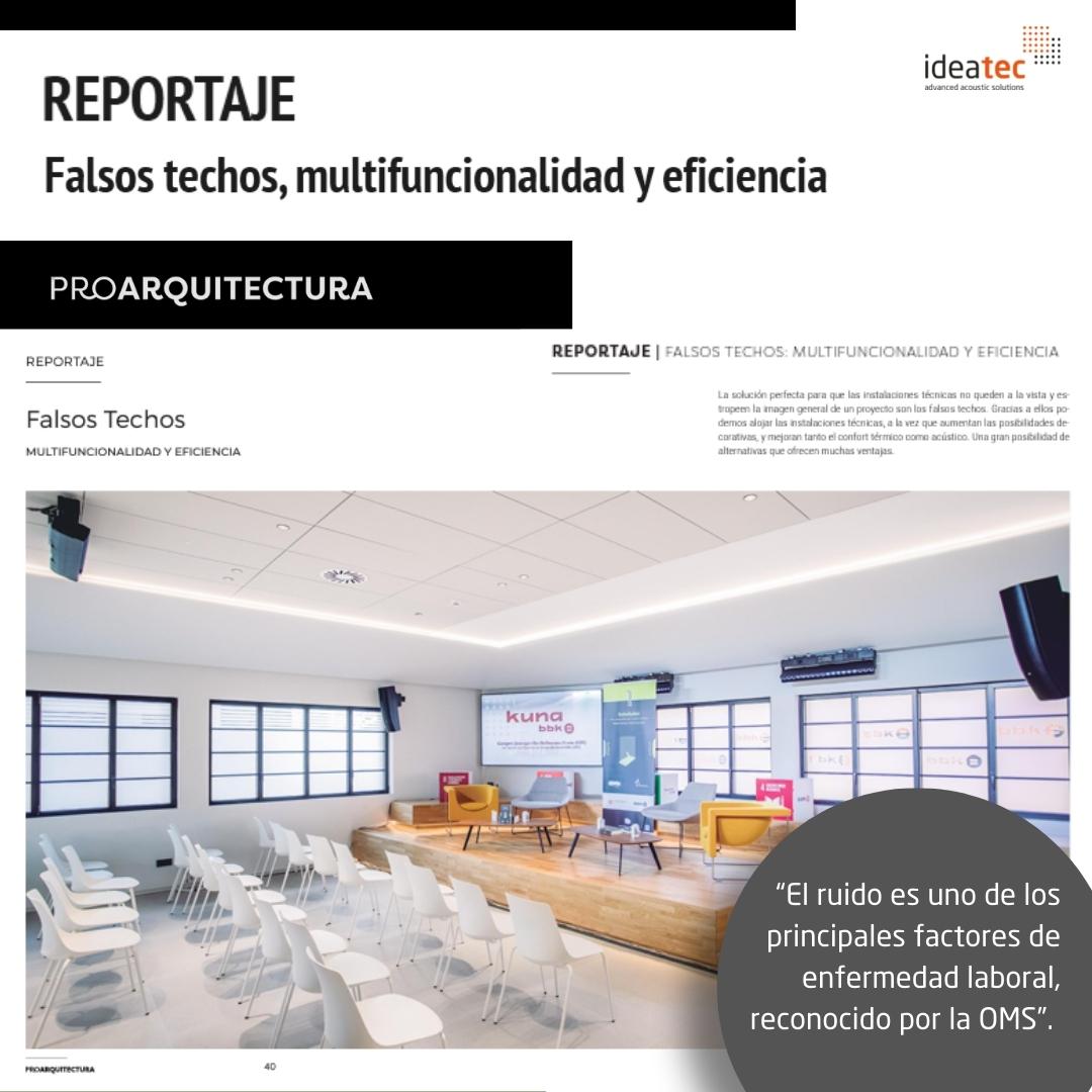 Ideatec aparece en la revista especializada PROARQUITECTURA Hoy os traemos un reportaje en el que hemos colaborado sobre falsos techos, multifuncionalidad y eficiencia, realizado